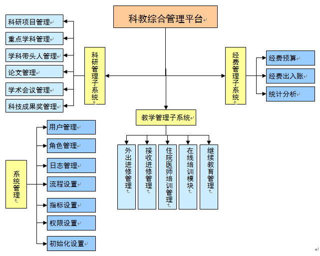 科教管理平台的设计开发旨在让医院科教管理部门更有效的组织日常管理工作;让科教信息数据更加全面的得到维护和应用;科研及教学各项组织工作更加客观和规范;同时也能让领导和相关管理者以更方便的把控科教工作的质量。系统由科研管理子系统、教学管理子系统和就经费管理子系统三大部分组成。