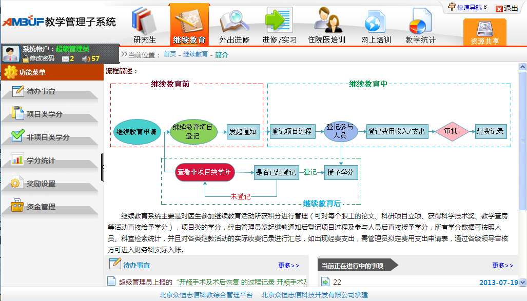 继续教育管理:主要是对医生参加继续教育活动所获积分进行管理。